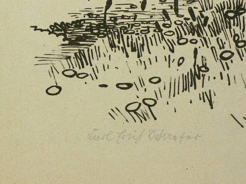 Um 1930. Lithografie / Federlithografie, in Schwarz, auf hellgelbem Velin. – Originale Künstlergrafik, von Karl Erich Schäfer. – 35,0 x 49,0 cm (Darstellung / Druckbild), 43 x 55 cm (Blatt).