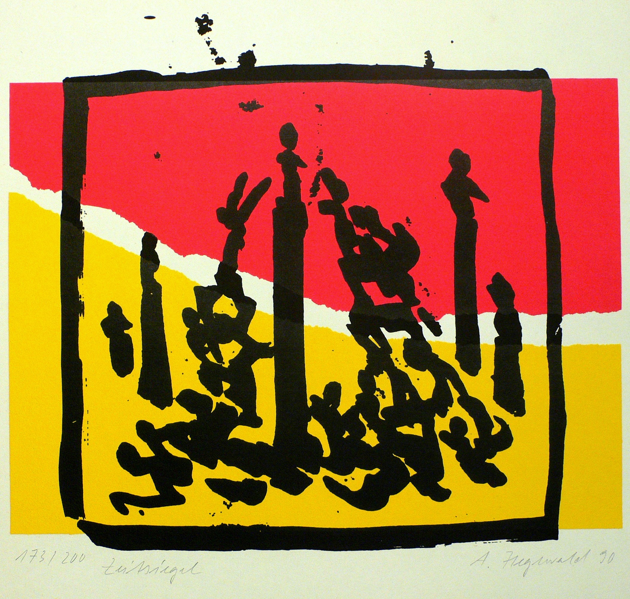 1990. Farbsiebdruck / Farbserigrafie. – Originale Künstlergrafik, von Andreas Hegewald. – Auflage Exemplar Nr. 173/200. – 29,3 x 34,0 cm (Darstellung), 36,5 x 36 cm (Blatt).