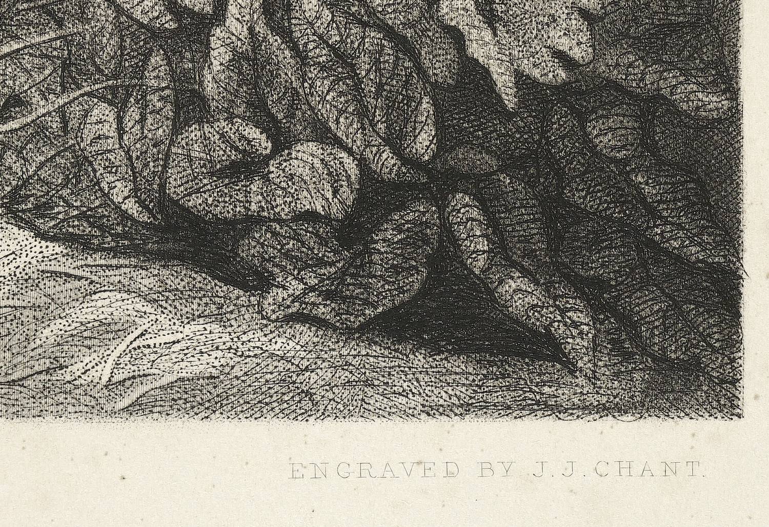 James John Chant (1819 London - nach 1883 London). Englischer Kupferstecher und Radierer. Stach u.a. nach Francis Grant, William Charles Th. Dobson, Thomas Faed und Edward John Poynter. Stellte 1861-83 regelmäßig auf den Ausstellungen der Royal Academy aus. Pflegte einen durchaus elaborierten Stil, in dem er verschiedene Techniken des Mezzotinto- und Linienstichs miteinander kombinierte.