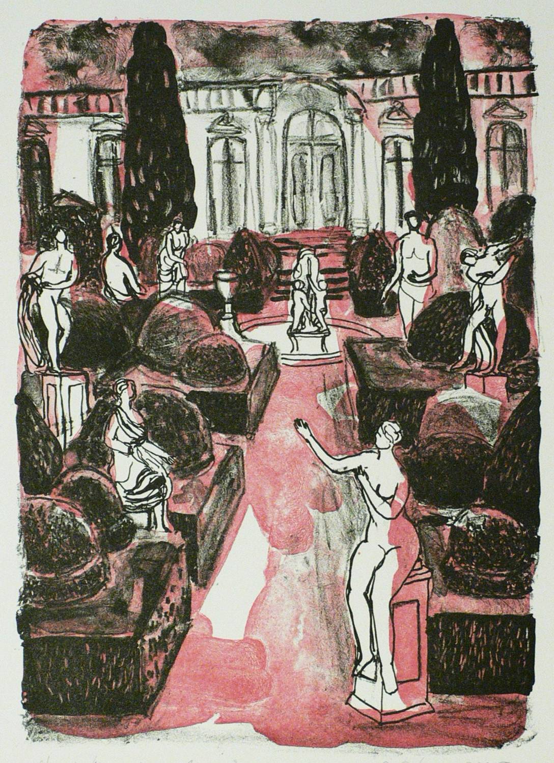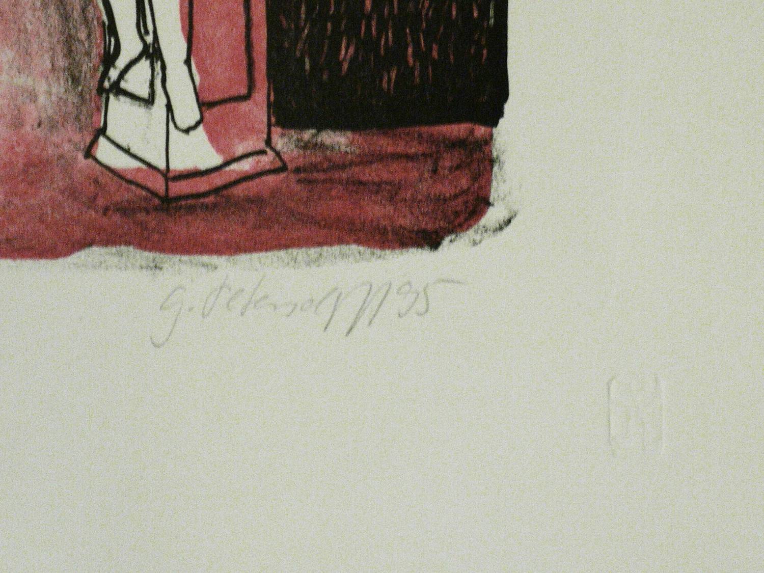 1995. Farblithografie / Kreide- & Pinsellithografie, in 2 Farben. – Originale Künstlergrafik, von Gudrun Petersdorff. – 28,5 x 20,0 cm (Darstellung), 39,5 x 30,5 cm (Blatt).