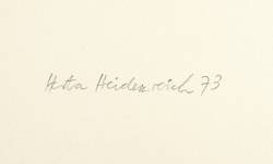 Herta Heidenreich (*1940 Dresden, lebt und arbeitet in Berlin). Deutsche Malerin und Grafikerin. 1960-67 Studium der Malerei und Baukeramik an der Kunsthochschule Berlin-Weißensee bei Walter Womacka. 1964 Geburt des Sohnes Matthias. 1967 Diplom. Seitdem freischaffend in Berlin tätig. Studienreisen in die Sowjetunion, nach Polen, Bulgarien und Spanien.