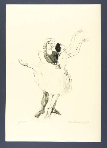 1973. Farblithografie / Pinsellithografie, in Grau & Schwarz, auf hellchamois Velin. – Originale Künstlergrafik, von Herta Heidenreich. – 34,0 x 26,2 cm (Darstellung / Druckbild), 51 x 36 cm (Blatt).