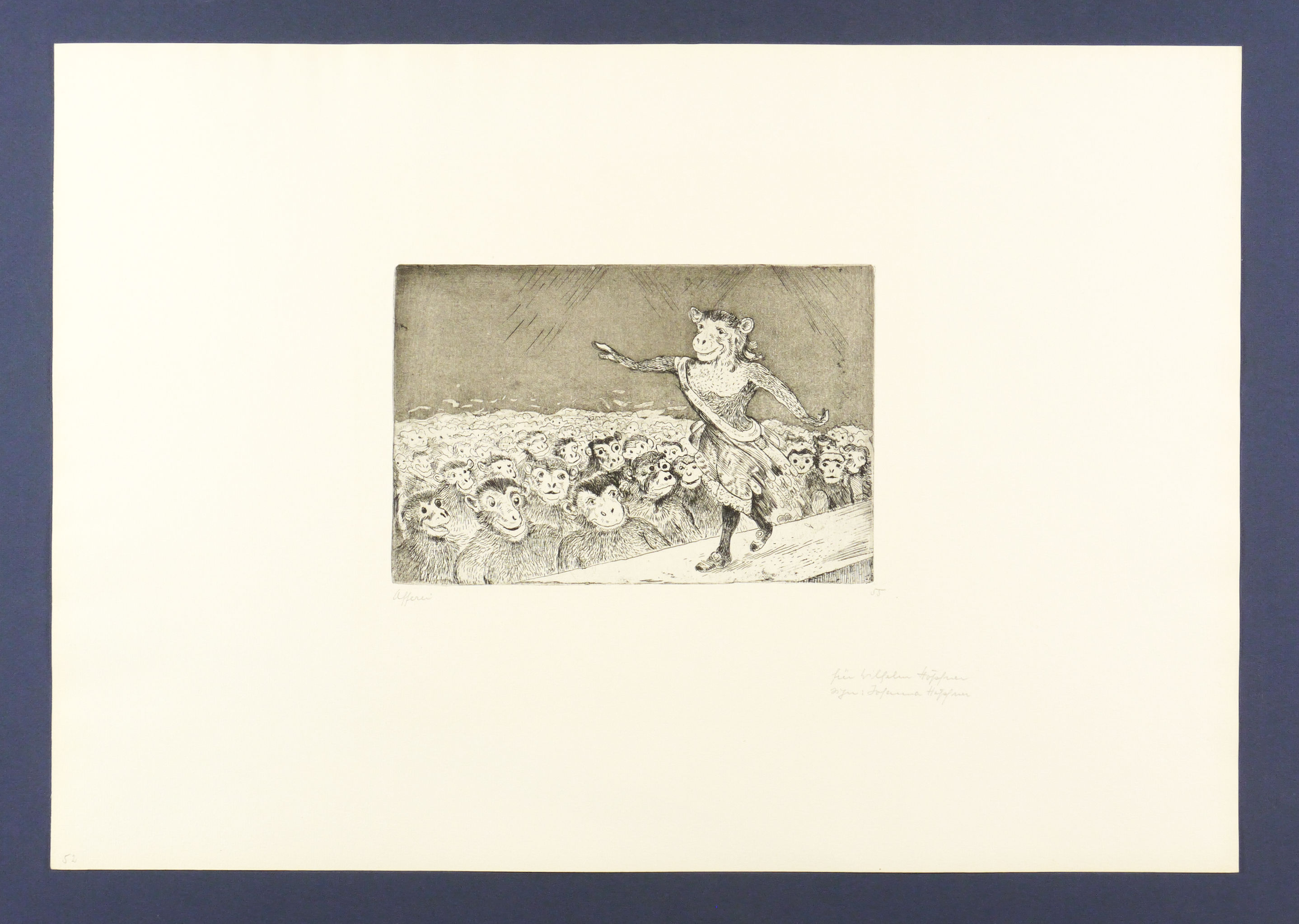 1955/1975. Radierung / Strichätzung & Aquatinta, in Schwarz, auf hellgelbem Weißenborn. – Originale Künstlergrafik, von Wilhelm Höpfner. – Auflage Exemplar Nr. 52/100. – 16,2 x 24,2 cm (Darstellung / Platte), 42 x 60 cm (Blatt).