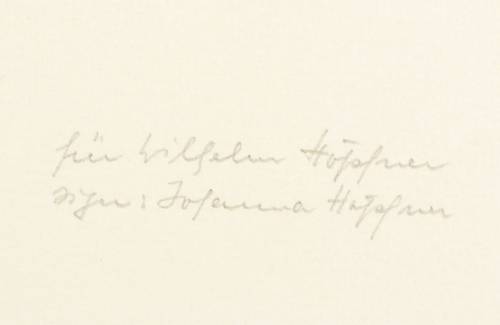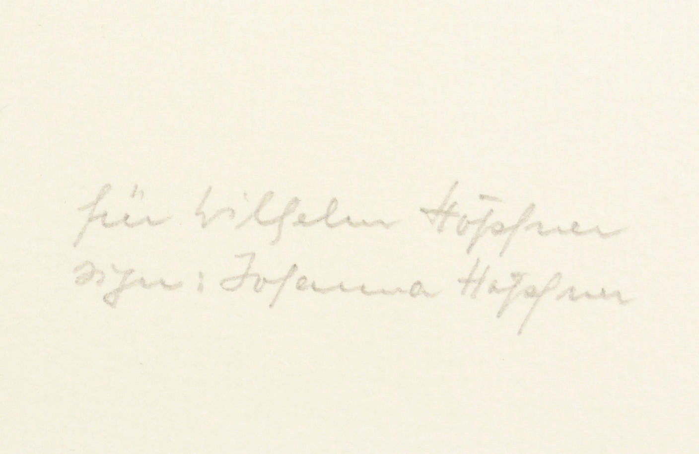 Höpfner-Kunze-Sperling 347. – Aus: Mappe 75. Mappen des Magdeburger Grafikkreises (Magdeburg: Grafikkreis 1975), Bd. 10. – Rechts unten in Bleistift von der Witwe Johanna Höpfner signiert. – Posthumer Druck von der originalen Platte durch Max Uhlig in Dresden. – Sehr gut erhalten.