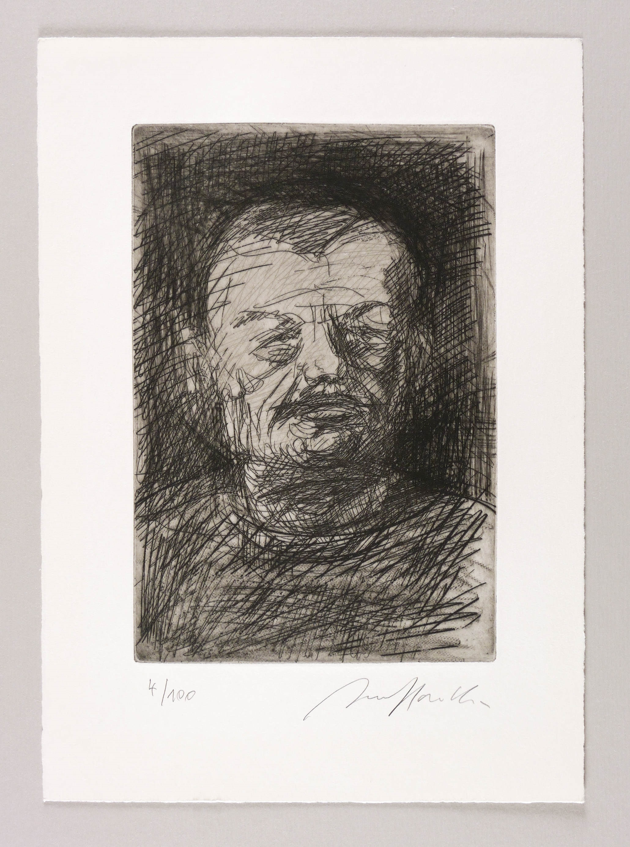 1989. Radierung / Strichätzung, Kaltnadel & Roulette, in Schwarz, mit Plattenton, auf Büttenpapier. – Originale Künstlergrafik, von Alfred Hrdlicka. – Auflage Exemplar Nr. 4/100. – 22,0 x 14,9 cm (Darstellung / Platte), 32 x 23 cm (Blatt).