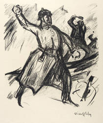 1917. Lithografie / Pinsellithografie, in Schwarz, auf weichem gelbem Velin. – Originale Künstlergrafik, von Ernst Bischoff-Culm. – 26,9 x 22,4 cm (Darstellung / Druckbild), 42 x 34 cm (Blatt).