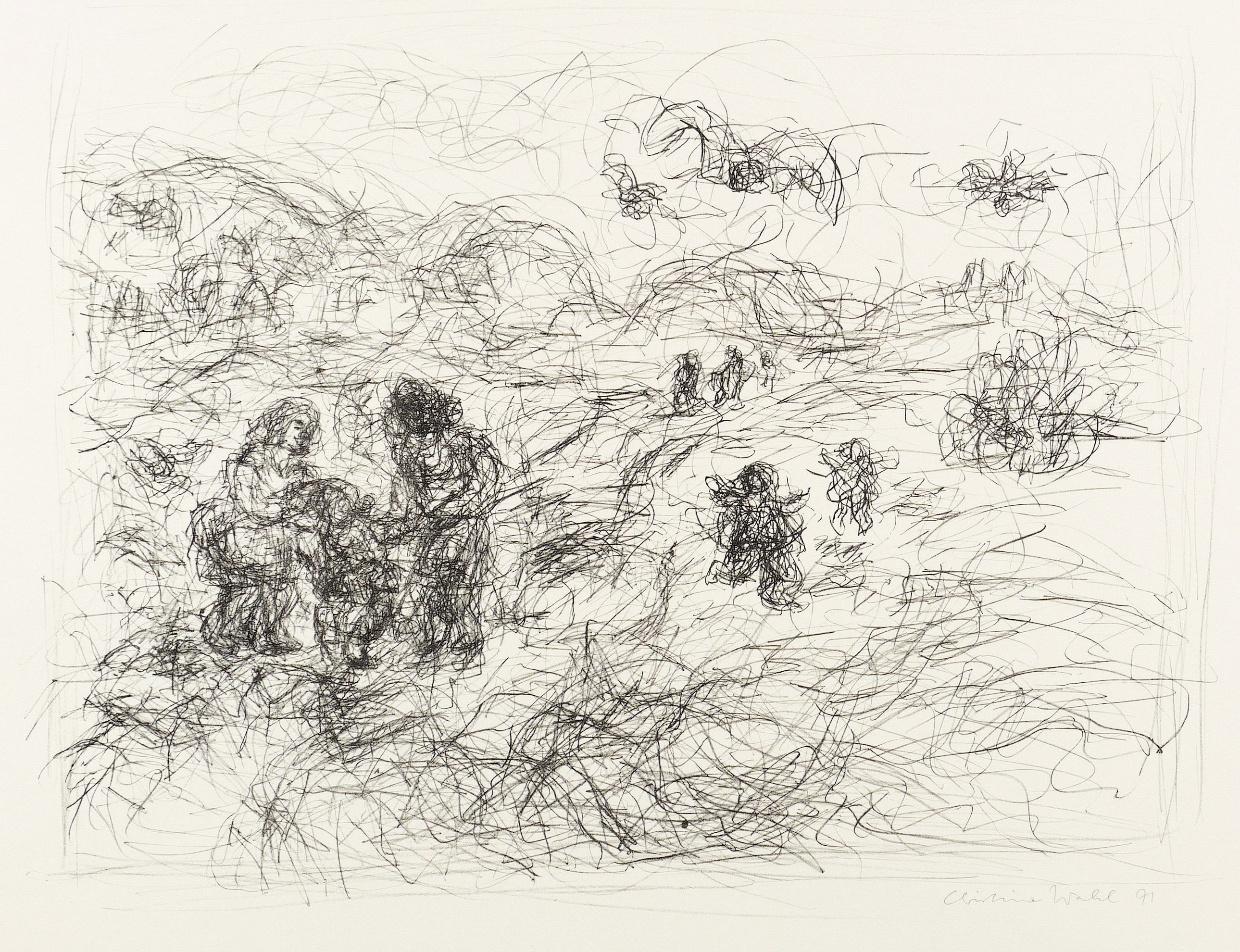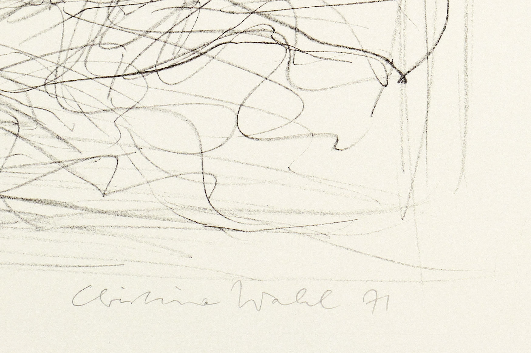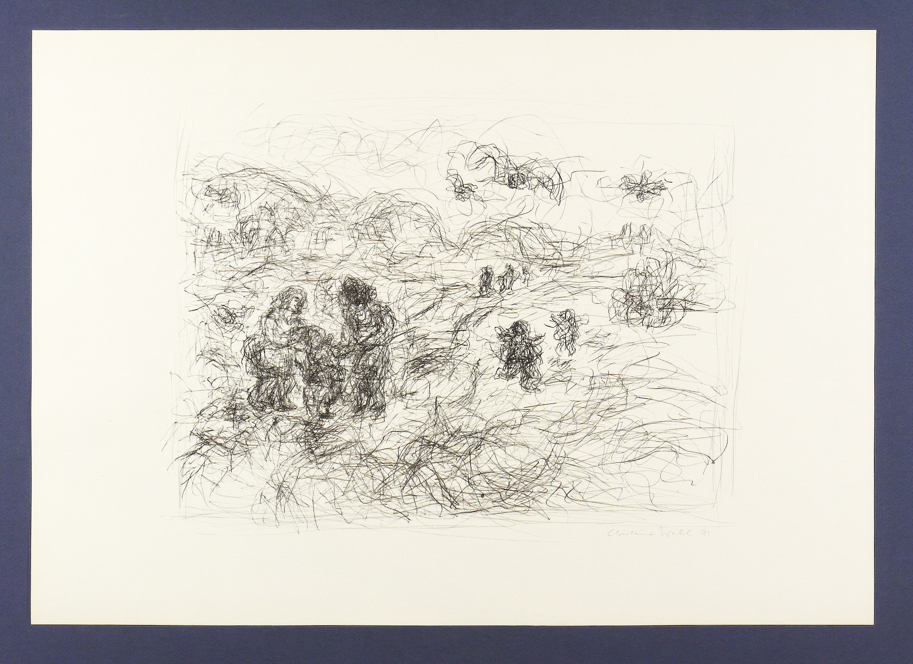 1971. Lithografie / Kreidelithografie, in Schwarz, auf hellem Velin. – Originale Künstlergrafik, von Christine Wahl. – Auflage Exemplar Nr. 32/70. – 31,5 x 39,0 cm (Darstellung), 42 x 60 cm (Blatt).