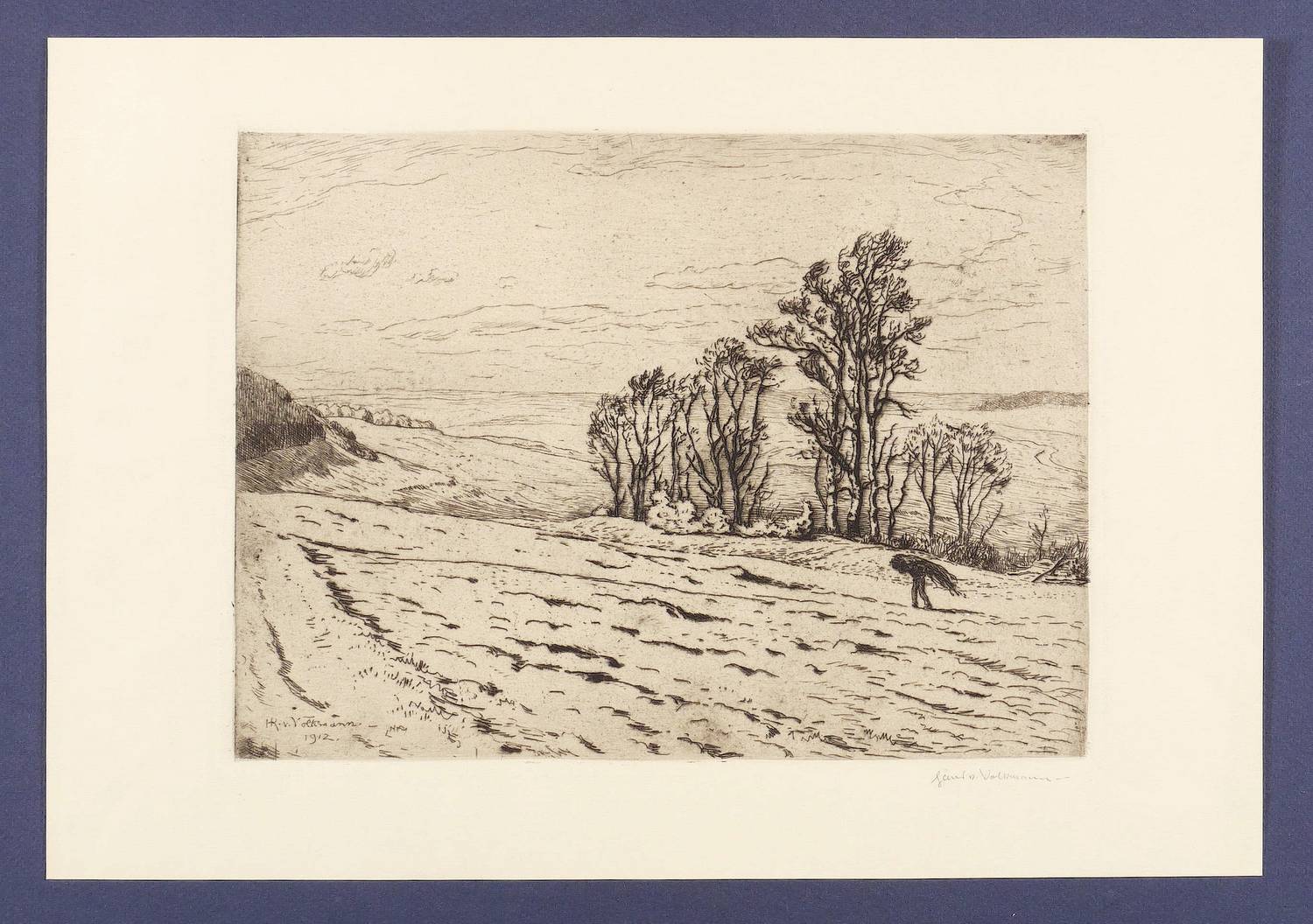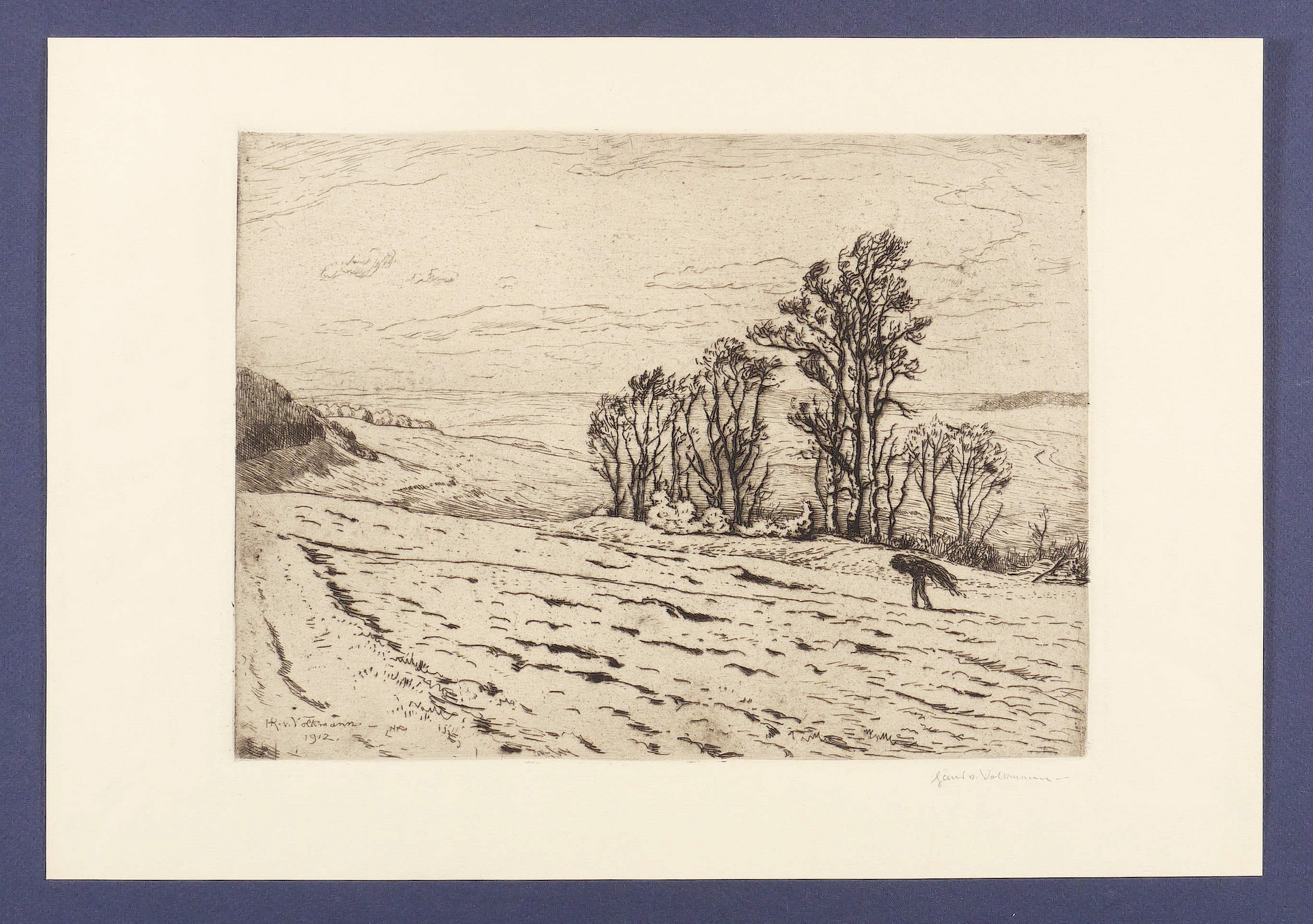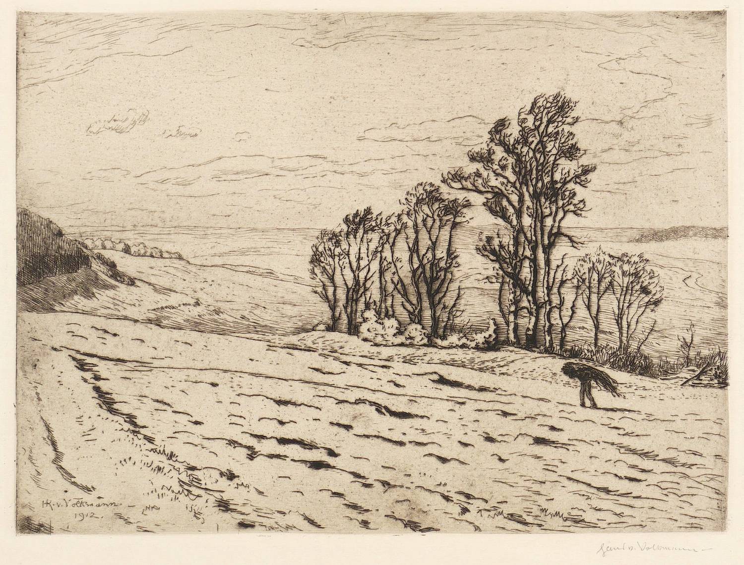 1912. Radierung / Strichätzung & Kaltnadel, partiell geschliffen, in Schwarz, auf gelblichem Kupferdruckkarton. – Originale Künstlergrafik, von Hans Richard von Volkmann. – 22,6 x 30,8 cm (Darstellung), 23,5 x 31,8 cm (Platte).