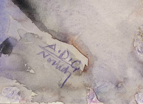 Rechts unten in violettem Farbstift signiert: ″A.D. G. Nerlich″. Verso in Kugelschreiber nochmals signiert und datiert: ″G. Nerlich 1974″. – Im äußeren Blattrand umlaufend Reißzwecklöchlein aus dem Herstellungsprozess. Tadellos. Sehr guter Zustand.