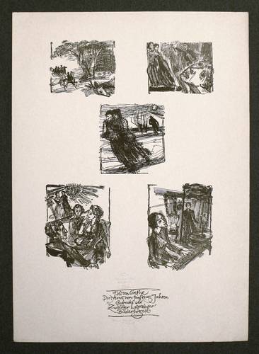 Aus: Leipziger Bilderbogen (Leipzig: 1981), Nr. 12. – Im Stock ausfürhlich betitelt und bezeichnet. unten mittig. Ebenda in Bleistift signiert, datiert ″13.8.88″, mit Auflagenbezeichnung und Widmung versehen. – Die Ecken stärker bestoßen und etwas gegilbt. Insgesamt etwas knickspurig. Mäßig guter Zustand.