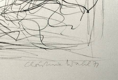 1971. Lithografie / Kreidelithografie, in Schwarz, auf hellchamois Velin. – Originale Künstlergrafik, von Christine Wahl. – Auflage 70 Exemplare. – 31,2 x 39,2 cm (Darstellung / Druckbild), 42 x 60 cm (Blatt).