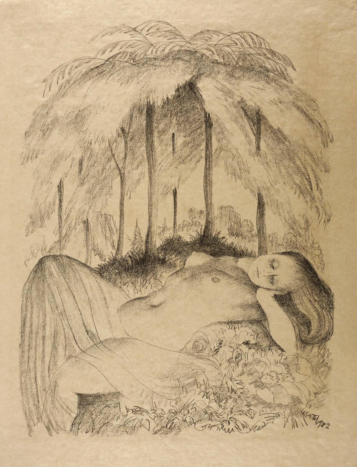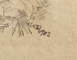 1922. Lithografie / Kreidelithografie, in Schwarz, auf wolkigem gelbem Maschinenpapier. – Originale Künstlergrafik, von Hubert Grüter. – 39,0 x 29,6 cm (Darstellung / Druckbild), 47 x 36 cm (Blatt).