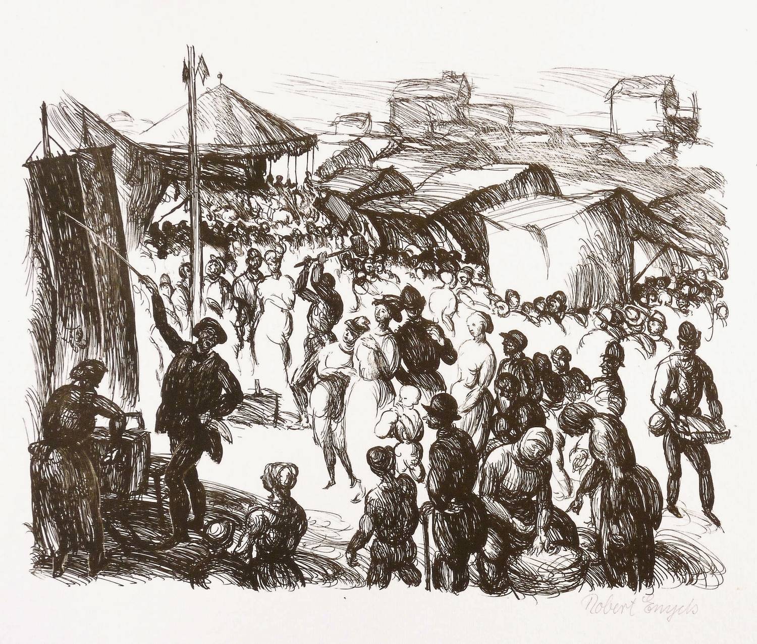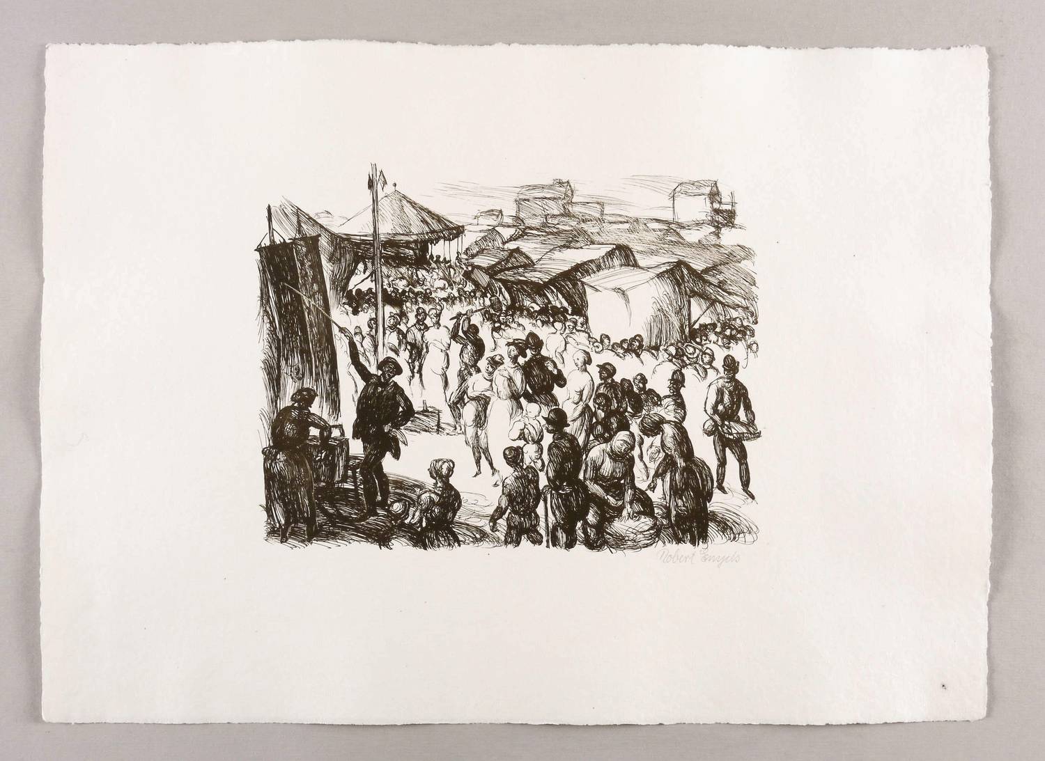 1920-1930. Lithografie / Federlithografie, in Schwarz, auf feinem hellem Van-Gelder-Zonen. – Originale Künstlergrafik, von Robert Engels. – 21,0 x 27,3 cm (Darstellung), 37 x 52 cm (Blatt).