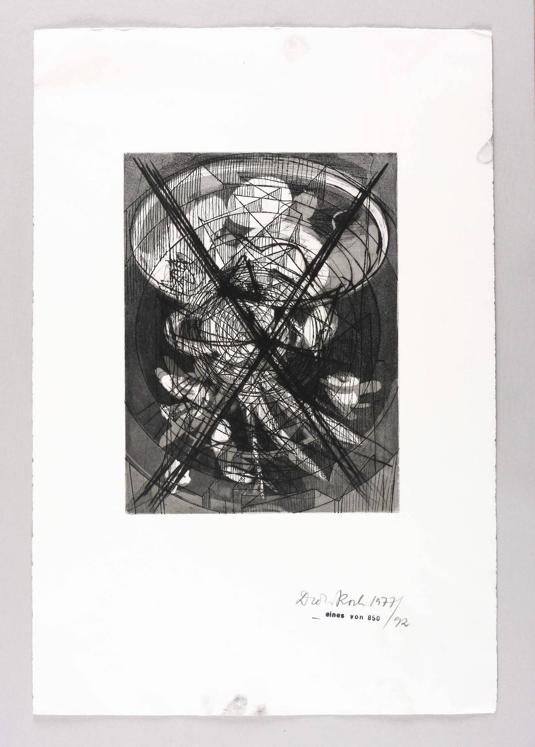 1977/1992. Radierung / Aquatinta & Strichätzung, in Schwarz, auf festem weißem Velinkarton. – Originale Künstlergrafik, von Dieter Roth. – Auflage 850 Exemplare. – 29,7 x 22,4 cm (Darstellung / Platte), 57 x 38 cm (Blatt).