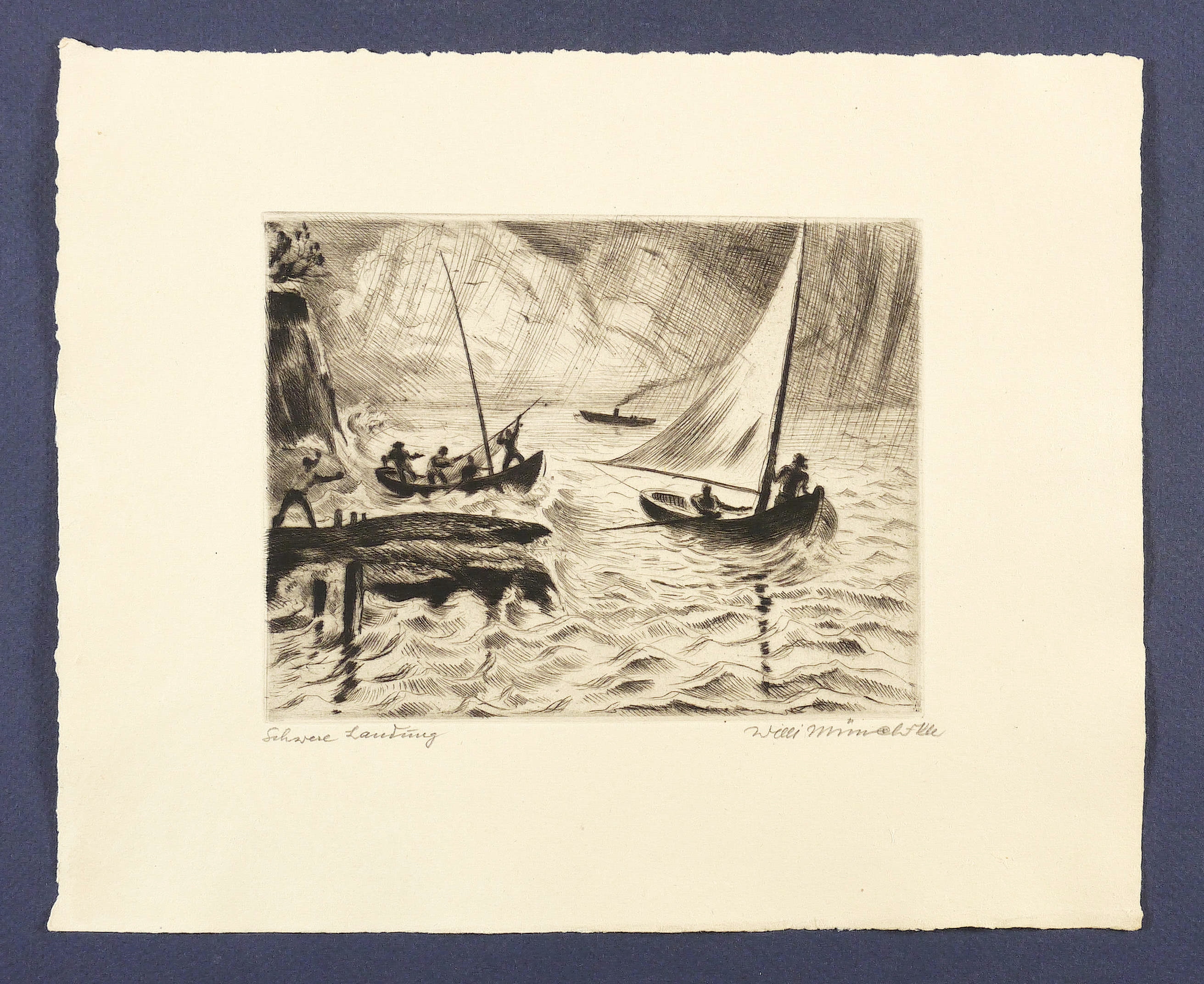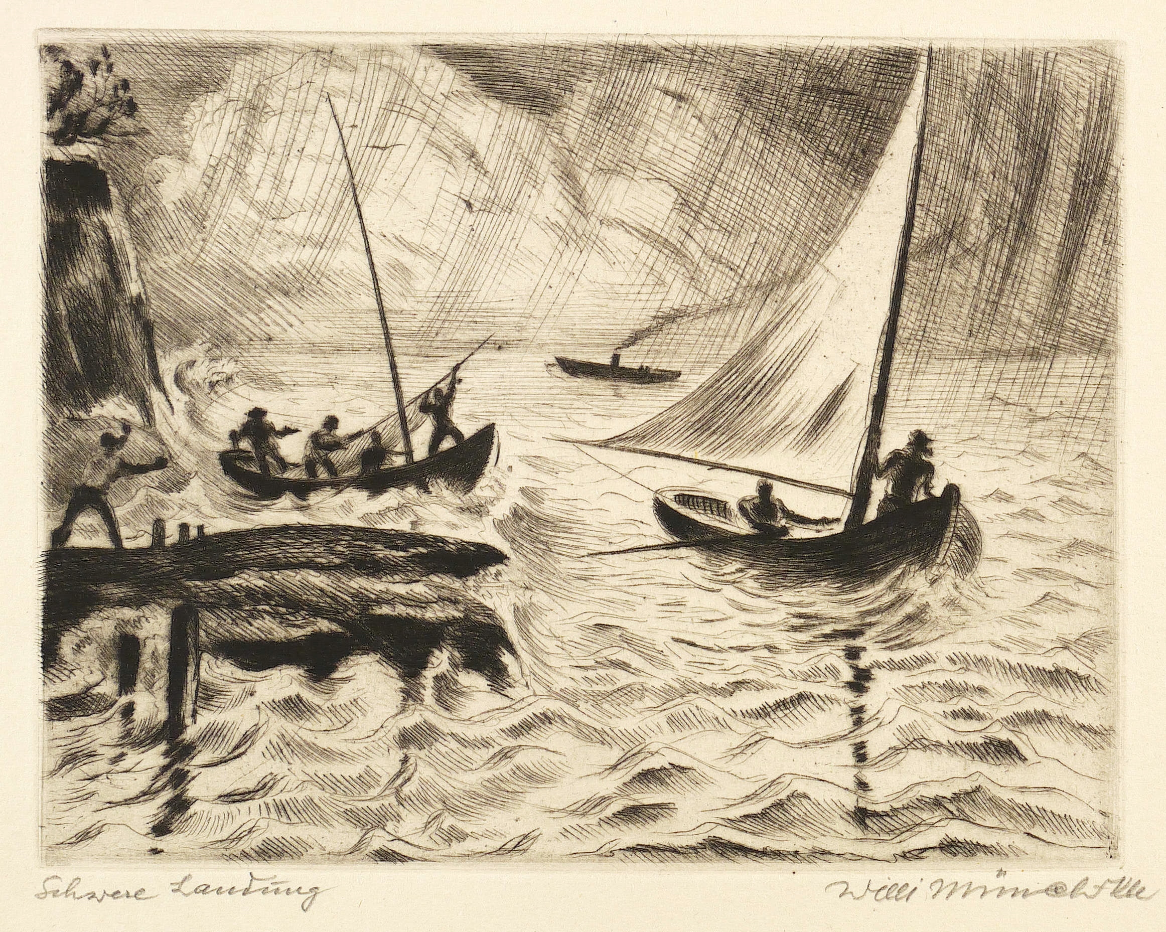 1920-1925. Radierung / Strichätzung & Kaltnadel, in Schwarz, auf hellem Büttenkarton. – Originale Künstlergrafik, von Willi Münch-Khe. – 13,3 x 17,4 cm (Darstellung / Platte), 23 x 29 cm (Blatt).