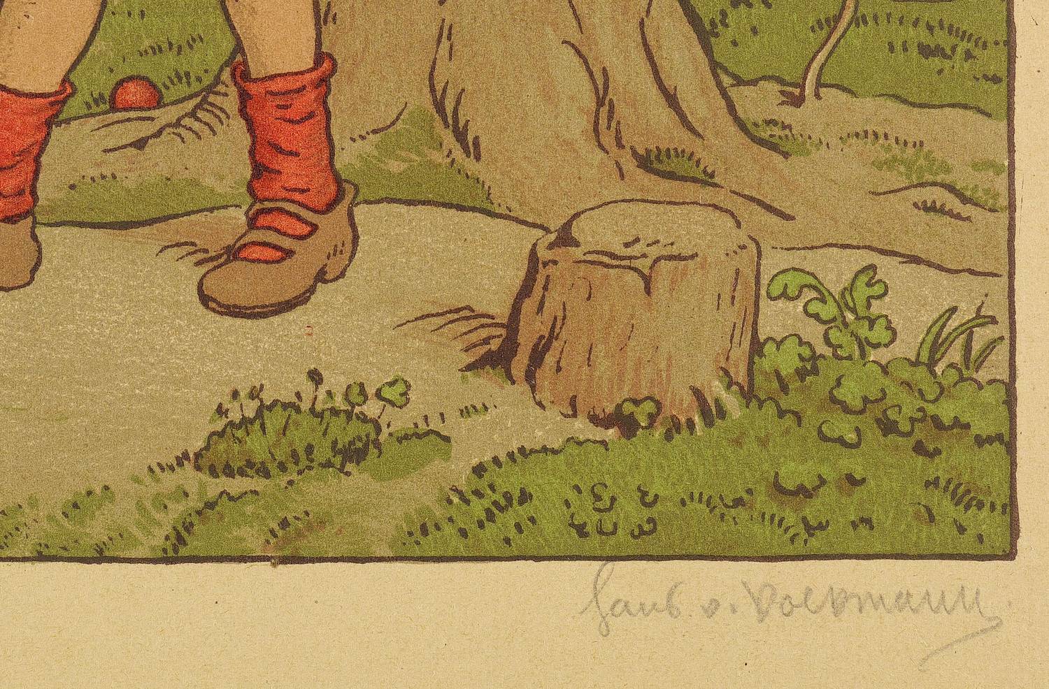 Um 1905. Farblithografie / Kreidelithografie, in 5 Farben, auf braun getöntem Büttenkarton. – Originale Künstlergrafik, von Hans Richard von Volkmann. – 28,2 x 22,1 cm (Darstellung), 33 x 24 cm (Blatt).