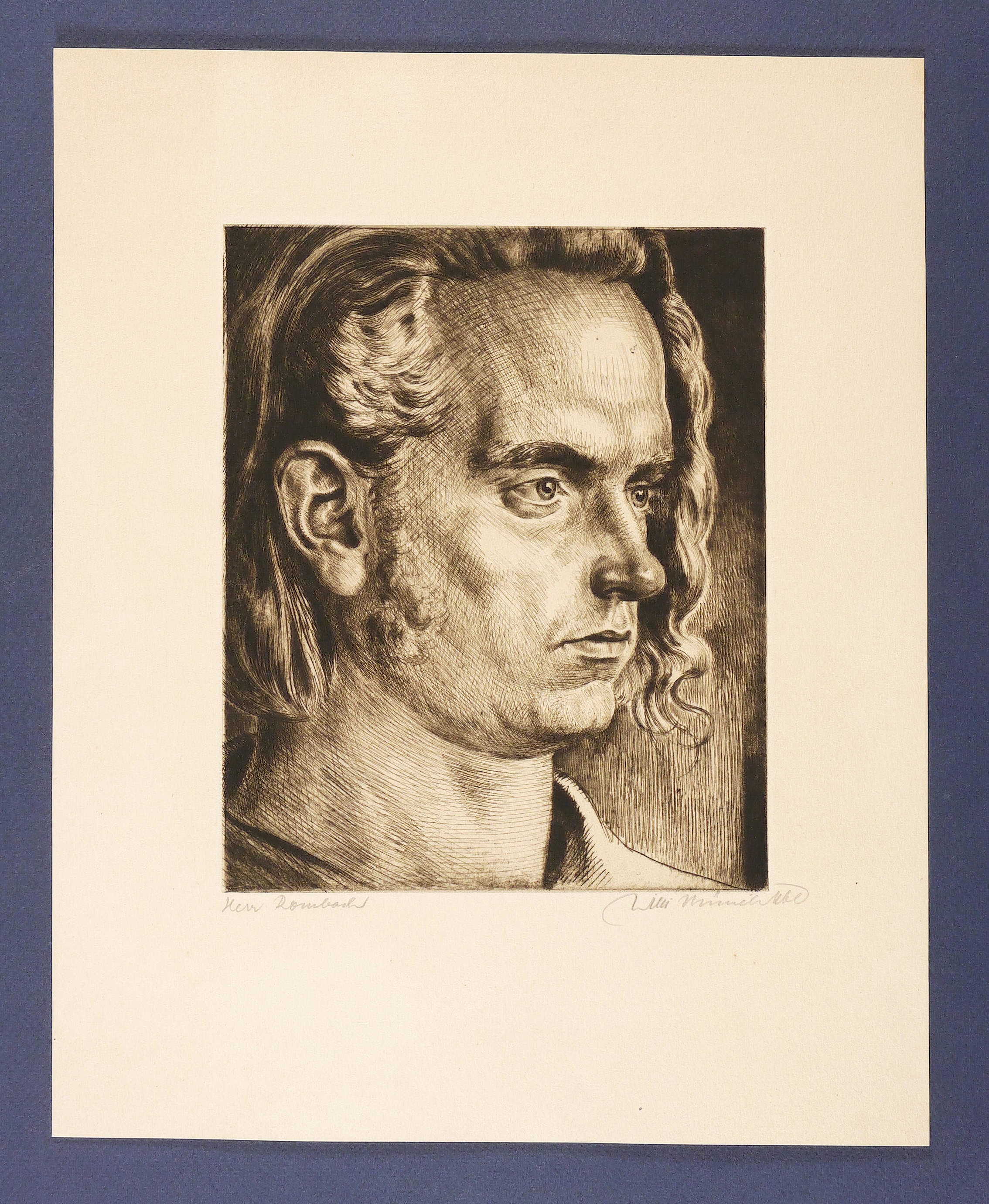 Rechts unten in Bleistift signiert. Links eigenhändig betitelt: ″Herr Rombach″. – Vermutlich handelt es sich bei dem Dargestellten um den jungen Malerkollegen Hermann Rombach (1890-1970). – Papier altersbedingt etwas gebräunt. Sonst sehr gutes Exemplar.
