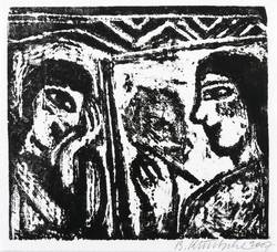 2007. Holzschnitt, in Schwarz, auf leichtem rauem Bütten. – Originale Künstlergrafik, von Bärbel Kuntsche. – 10,2 x 11,2 cm (Darstellung / Druckstock), 11,1 x 12,3 cm (Blatt), 13 x 15 cm (Trägerkarton).