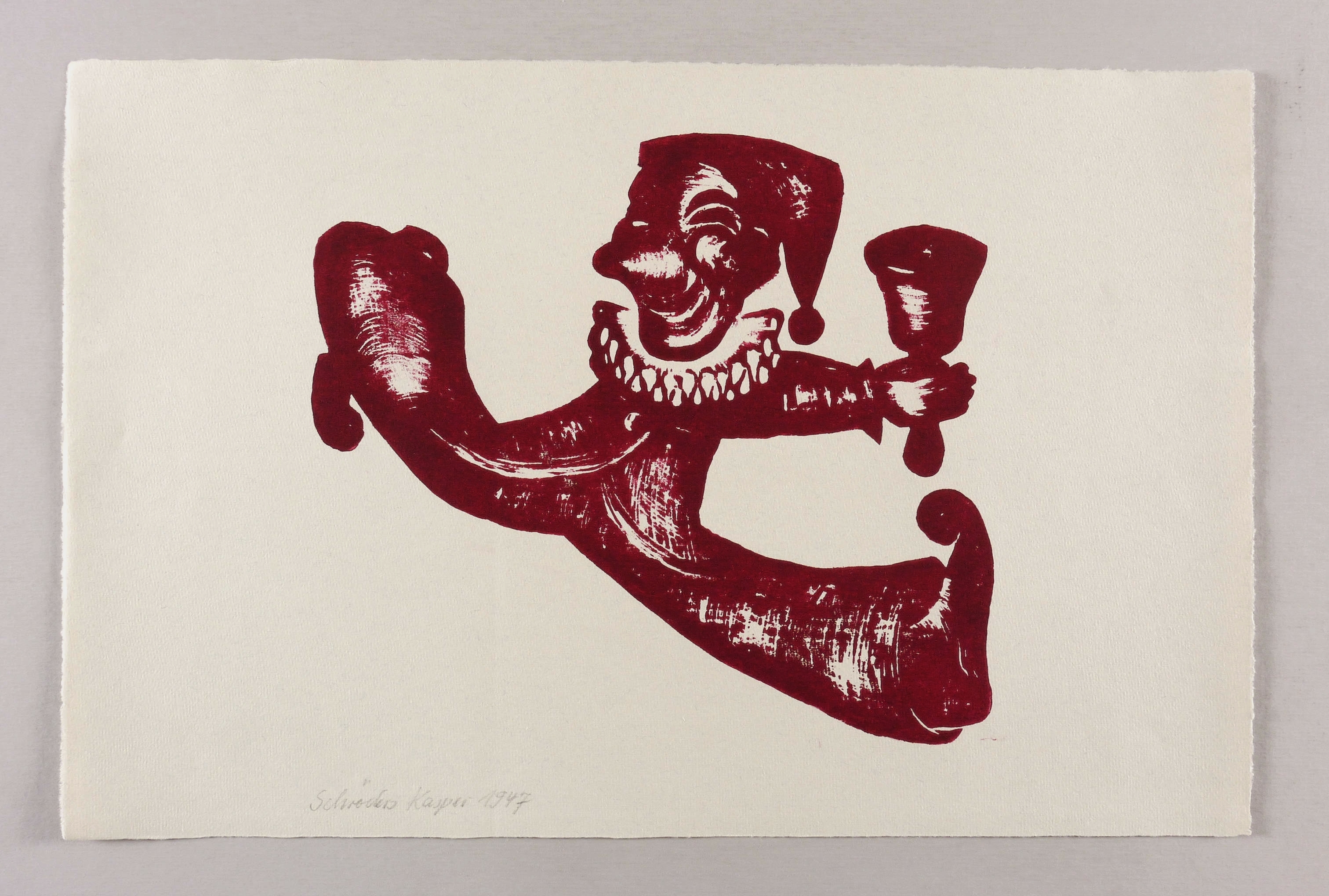 Links unten in Bleistift bezeichnet: ″Schröders Kasper 1947″. Verso bezeichnet, datiert und signiert: ″Nachlaßdruck 1-20 / 2005 // Karin Schröder″. – Nachlassdruck aus dem Jahr 2005 vom originalen Holzstock. – Sehr guter Zustand.