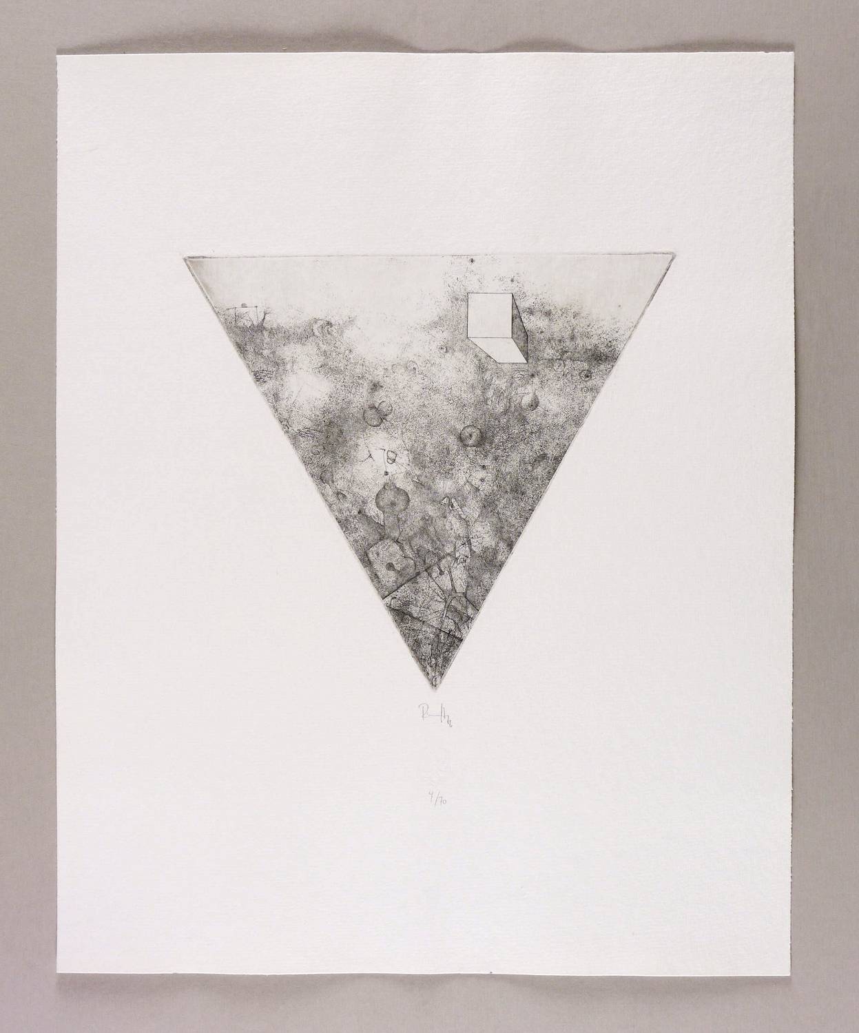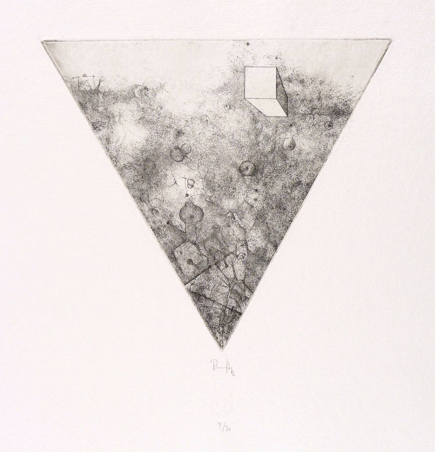 1976. Radierung / Strichätzung & Punzenstich, in Schwarz, auf hartem hellgelbem Karton. – Originale Künstlergrafik, von Thomas Ranft. – Auflage Exemplar Nr. 4/70. – 23,1 x 26,1 cm (Darstellung / Platte), 49 x 39 cm (Blatt).