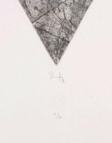 Aus: Falko Behrendt u.a., Imagination Format (Dresden: eikon Grafik-Presse 1976). – Unterhalb in Bleistift signiert und datiert. Darunter Auflagenbezeichnung und Trockenstempel. In der Platte am linken Rand schwer lesbare spiegelschriftliche Inschrift: ″Steh auf ...″ – Sehr guter Zustand.