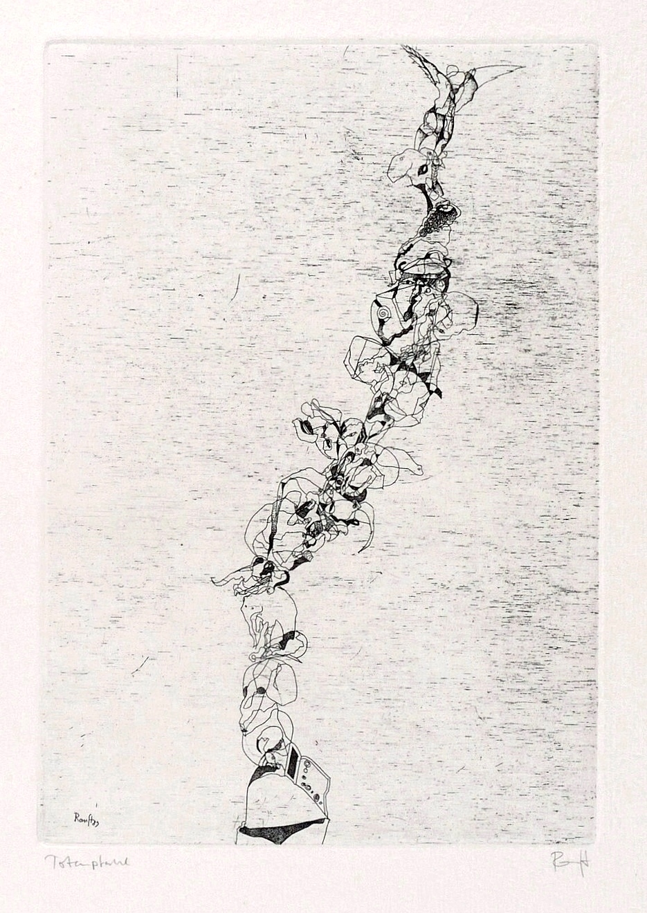 1989. Radierung / Strichätzung, in Schwarz, auf gelblichem Papier. – Originale Künstlergrafik, von Thomas Ranft. – Auflage Exemplar Nr. 79/200. – 22,8 x 15,6 cm (Darstellung / Platte), 36 x 36 cm (Blatt).