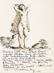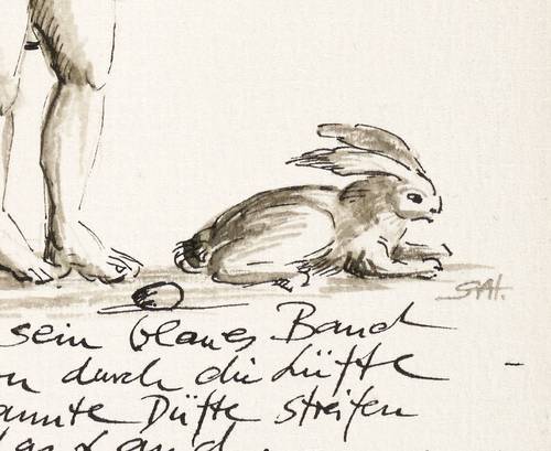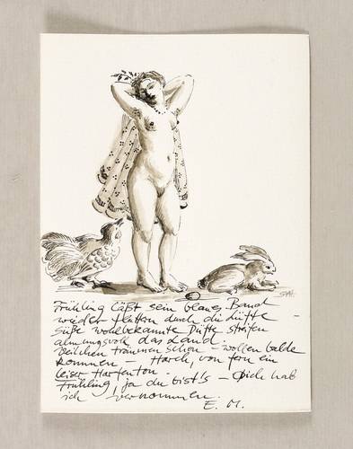 Rechts unten in Tusche signiert mit Monogramm: ″SAH″. Unterhalb Inschrift: ″Frühling läßt sein blaues Band / wieder flattern durch die Lüfte - / süße wohlbekannte Düfte streifen / ahnungsvoll das Land. / Veilchen träumen schon - wollen balde / kommen - Horch, von fern ein / leiser Harfenton. / Frühling, ja du bist's - Dich hab / ich vernommen. / E.M.″ – Tadelloses Exemplar.