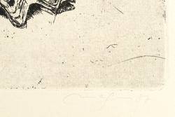 1987. Radierung / Strichätzung, in Schwarz, mit Plattenton, auf Hahnemühle. – Originale Künstlergrafik, von Klaus Magnus. – 26,9 x 21,8 cm (Darstellung / Platte), 53 x 39,5 cm (Blatt).