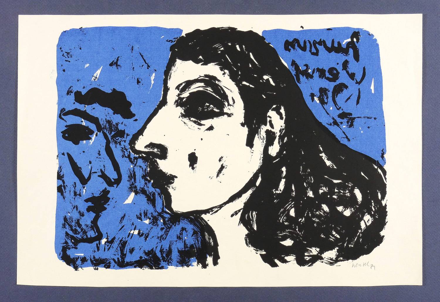 1981. Farbsiebdruck / Farbserigrafie, in Blau & Schwarz, auf hellem Maschinenbütten. – Originale Künstlergrafik, von Jürgen Wenzel. – 22,7 x 30,9 cm (Darstellung / Druckbild), 25,5 x 37,5 cm (Blatt).