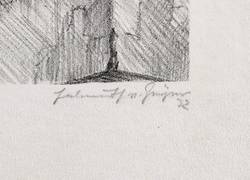 1932. Lithografie / Kreidelithografie, in Schwarz, auf rauem hellgelbem Büttenkarton. – Originale Künstlergrafik, von Helmuth von Geyer. – 24,8 x 28,3 cm (Darstellung / Druckbild), 36 x 38 cm (Blatt).
