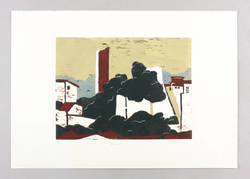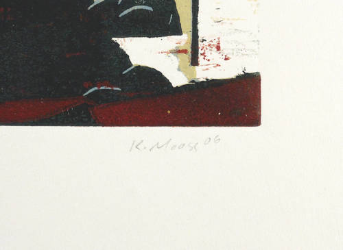 2006. Farblinolschnitt, in 4 Farben, auf festem hellchamois Velin. – Originale Künstlergrafik, von Konrad Maass. – Auflage Exemplar Nr. 3/4. – 22,6 x 30,0 cm (Darstellung / Druckbild), 35 x 50 cm (Blatt).