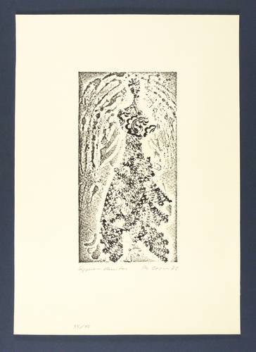 1972. Materialdruck, in Schwarz, auf hartem Maschinenpapier. – Originale Künstlergrafik, von Philip Oeser. – Auflage Exemplar Nr. 35/40. – 24,9 x 13,0 cm (Darstellung / Platte), 42 x 30 cm (Blatt).
