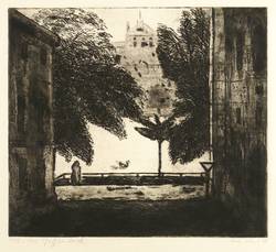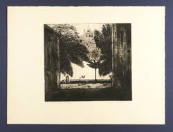 1978. Radierung / Strichätzung & Reservage, in Schwarz, auf hellchamois Velin. – Originale Künstlergrafik, von Eva Vent. – Auflage Exemplar Nr. 6/17. – 24,8 x 27,9 cm (Darstellung / Platte), 38 x 50 cm (Blatt).