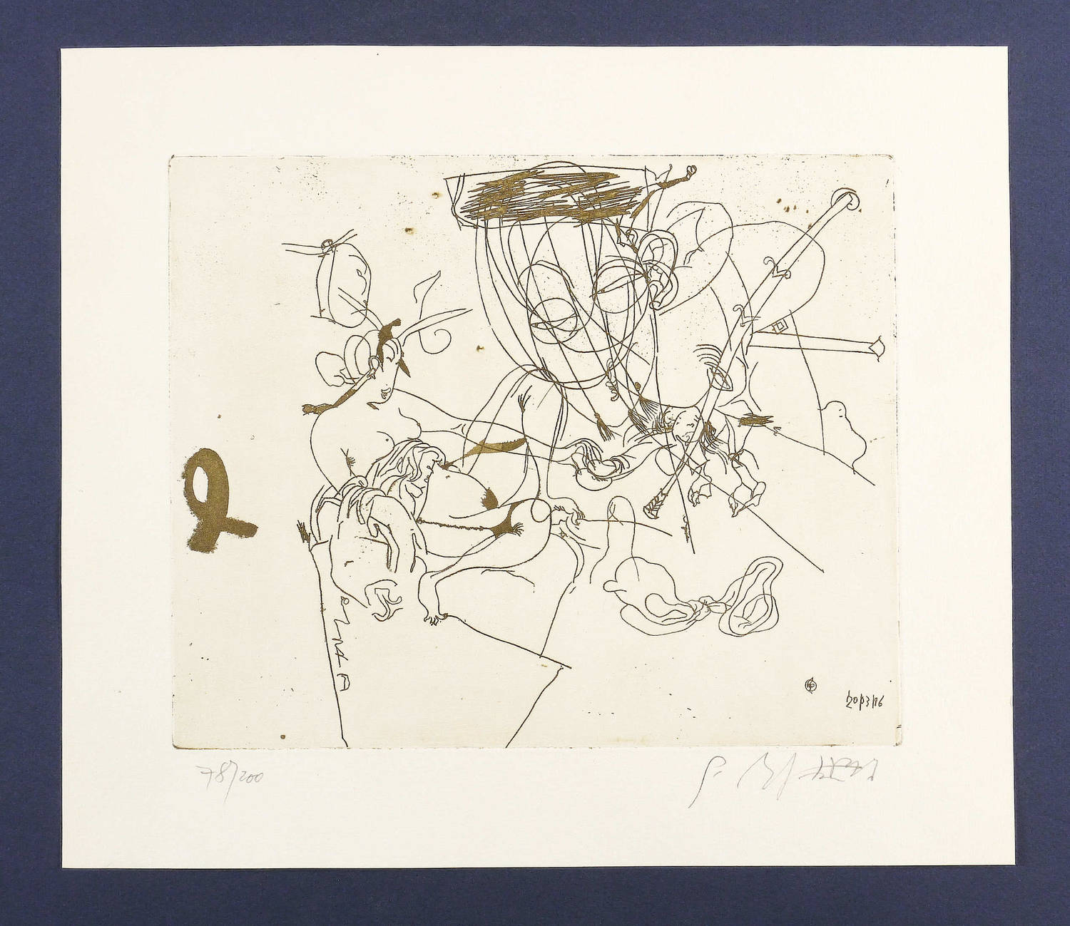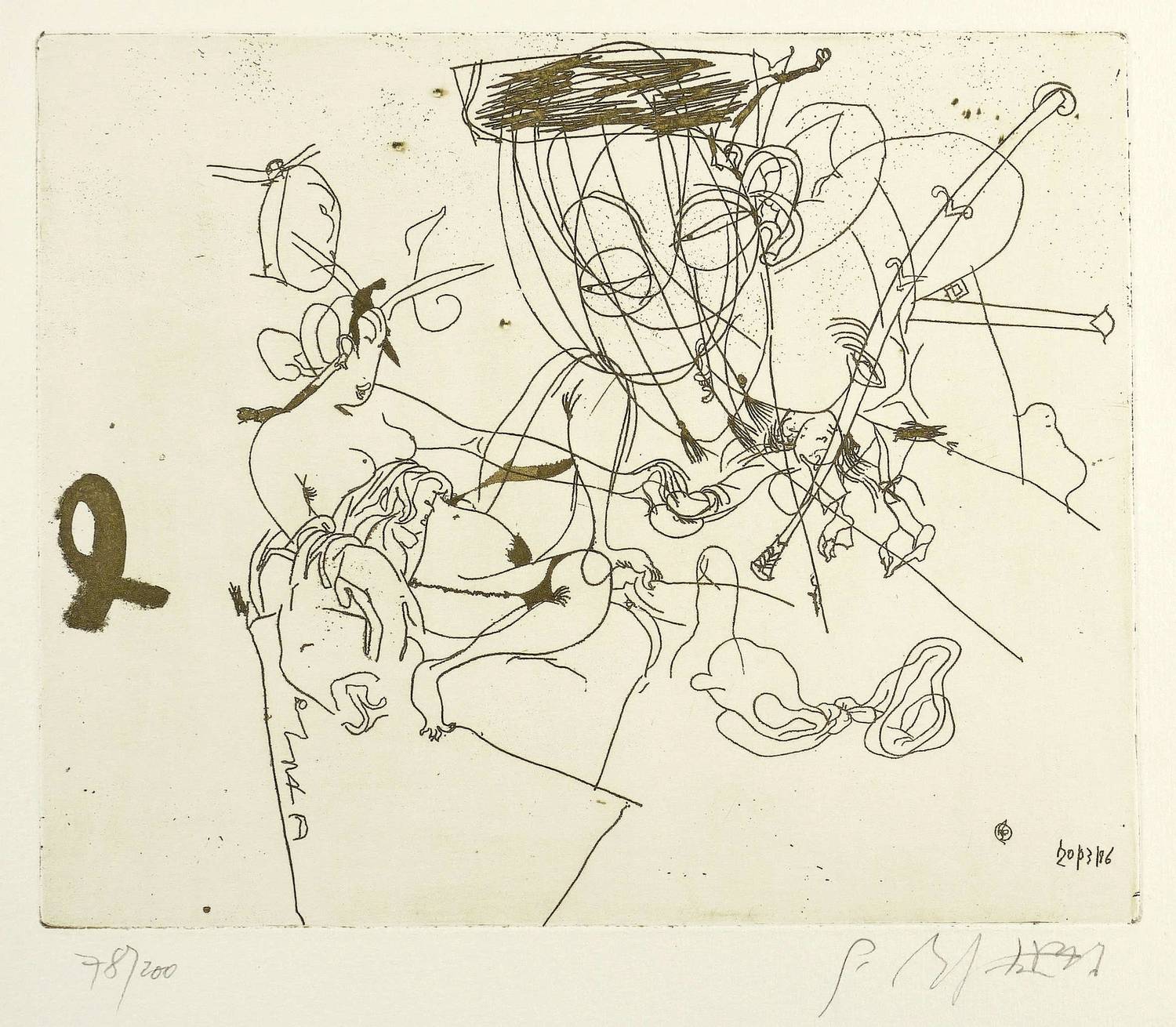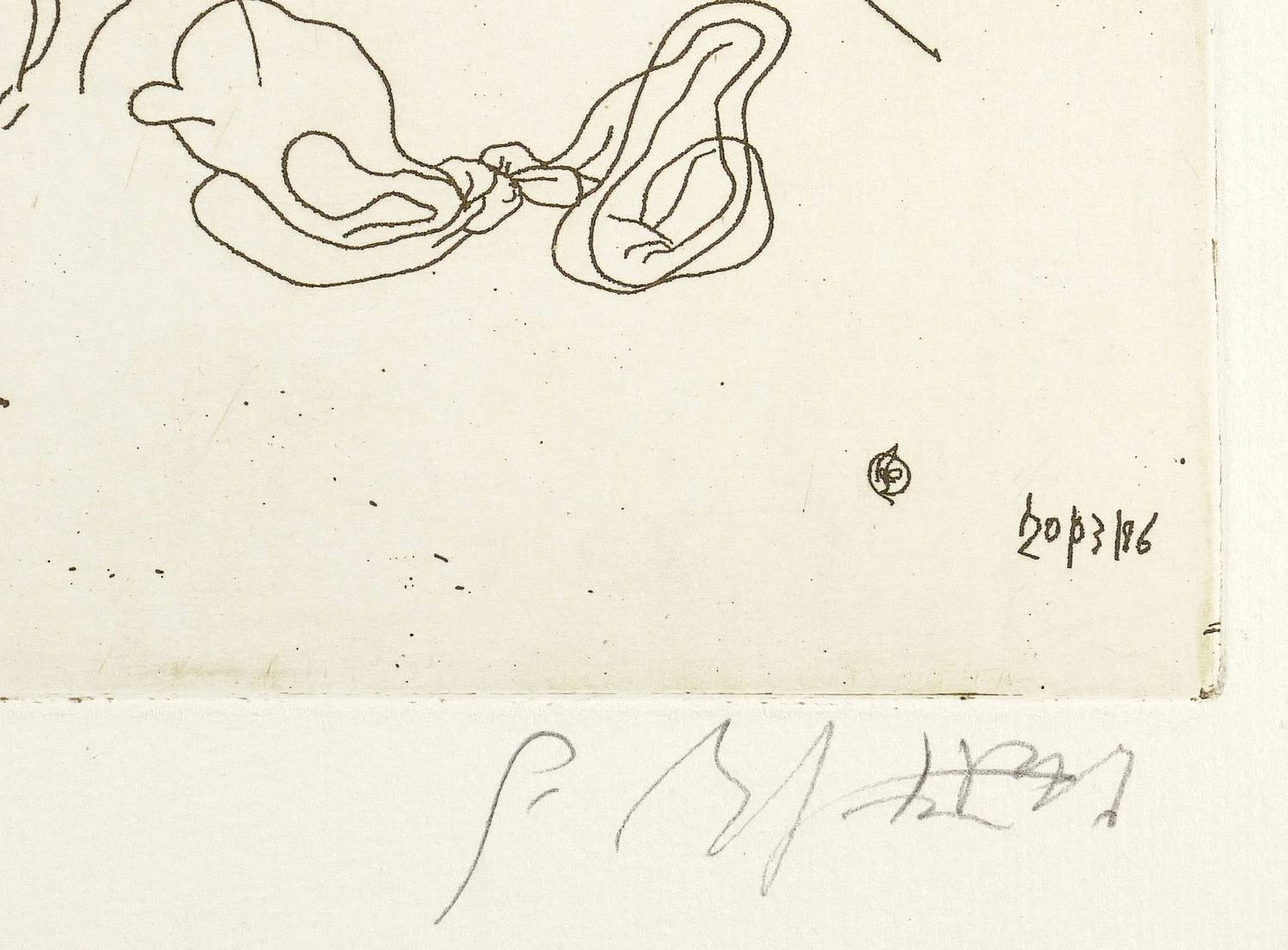 1986. Radierung / Strichätzung, mit Plattenton, in Braun, auf Weißenborn-Bütten. – Originale Künstlergrafik, von Gerd Mackensen. – Auflage Exemplar Nr. 78/200. – 22,3 x 27,4 cm (Darstellung / Platte), 31 x 36 cm (Blatt).