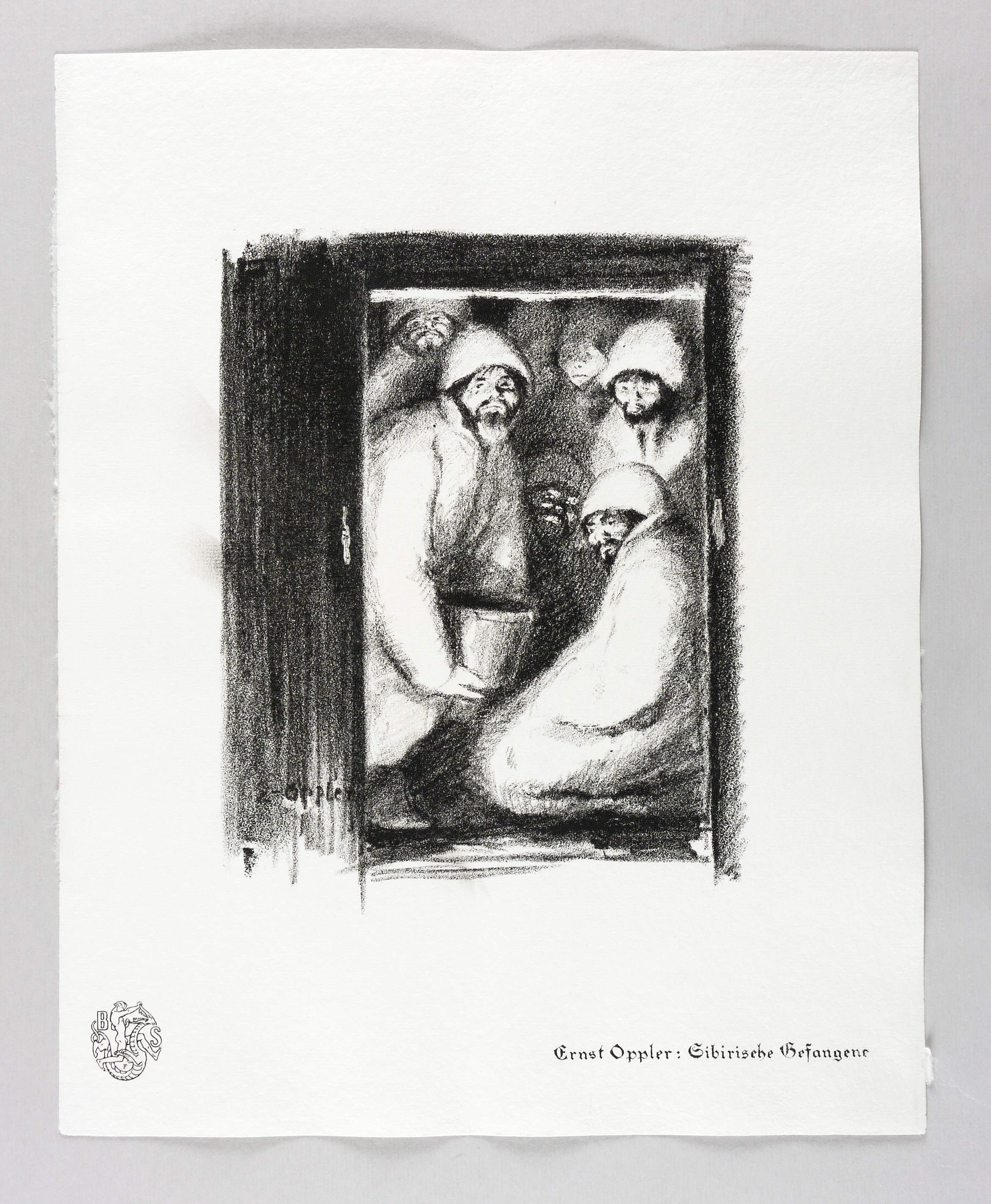 Aus: Krieg und Kunst. Original-Steinzeichnungen der Berliner Sezession (Berlin: Julius Bard 1915). – Nicht handsigniert. Im Stein links unten signiert: ″E.-Oppler″. Im Blattrand rechts unten typografisch bezeichnet: ″Ernst Oppler: Sibirische Gefangene″. Links unten Vignette der Berliner Secession. – Originalrandiges Exemplar. Tadellos. Sehr guter Zustand.
