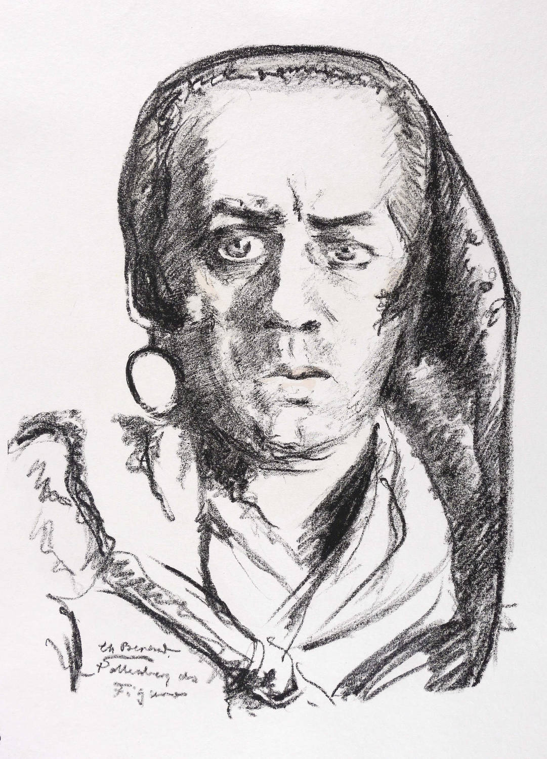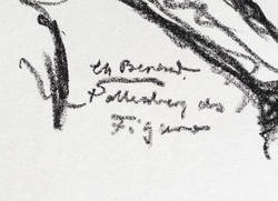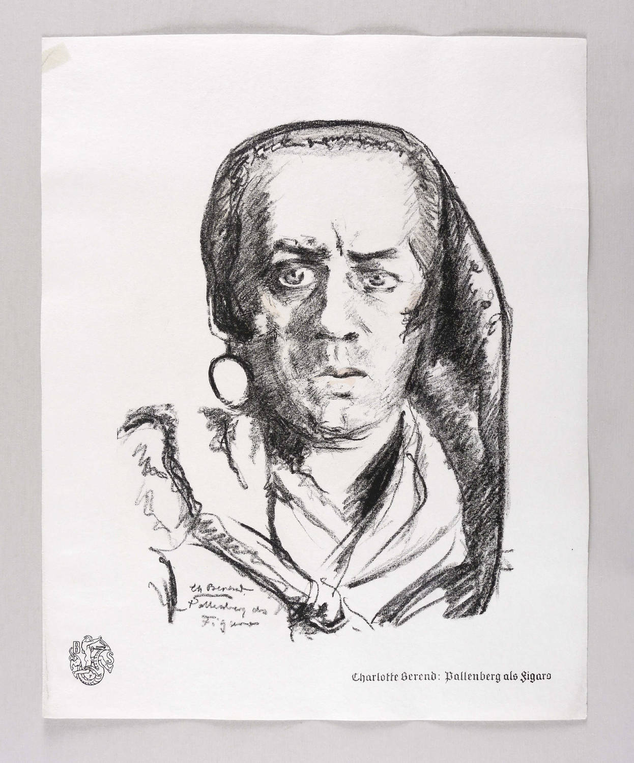 Aus: Krieg und Kunst. Original-Steinzeichnungen der Berliner Sezession (Berlin: Julius Bard 1916). – Nicht handsigniert. Im Stein rechts unten signiert und bezeichnet: ″Ch Berend // Pallenberg als Figaro″. Außerhalb des Steins rechts unten typografisch bezeichnet und betitelt: ″Charlotte Berend: Pallenberg als Figaro″. Links unten Vignette der Berliner Sezession. – In der linkne oberen Blattecke leicht durchschlagende ältere Klebemontierung. Insgesamt guter Zustand.