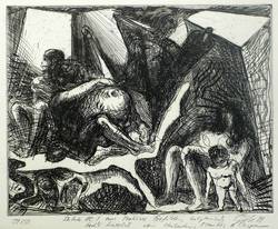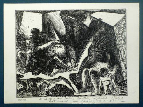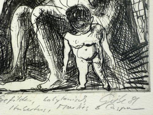 1981. Radierung / Kaltnadel, in Schwarz, auf hellchamois Velin. – Originale Künstlergrafik, von Hubertus Giebe. – Auflage Exemplar Nr. 39/50. – 19,4 x 24,6 cm (Darstellung / Platte), 23 x 30 cm (Blatt).