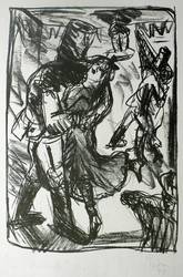 Rechts unten in Bleistift signiert und datiert. Links Titel und Auflagenbezeichnung. – Tanzendes Paar auf einem Ball oder Fest. – Blattrand knickspurig und minimal angeschmutzt. Insgesamt gut erhalten.