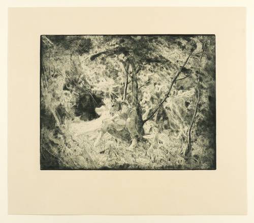 Aus: Freunde Graphischer Kunst. Jahresgabe VII (Leipzig: 1919). – Nicht handsigniert. Verso von fremder Hand bezeichnet und datiert. – Die Darstellung zeigt aus dem Bühnengeschehen von A Midsummer Night's Dream von William Shakespeare die Verwandlung des Kopfes des Handwerkers Niklaus Zettel in einen Eselskopf, nichtsdestotrotz sich die von Oberon verzauberte Titania beim Erwachen in ihn verlieben wird. – Sehr schön erhalten.
