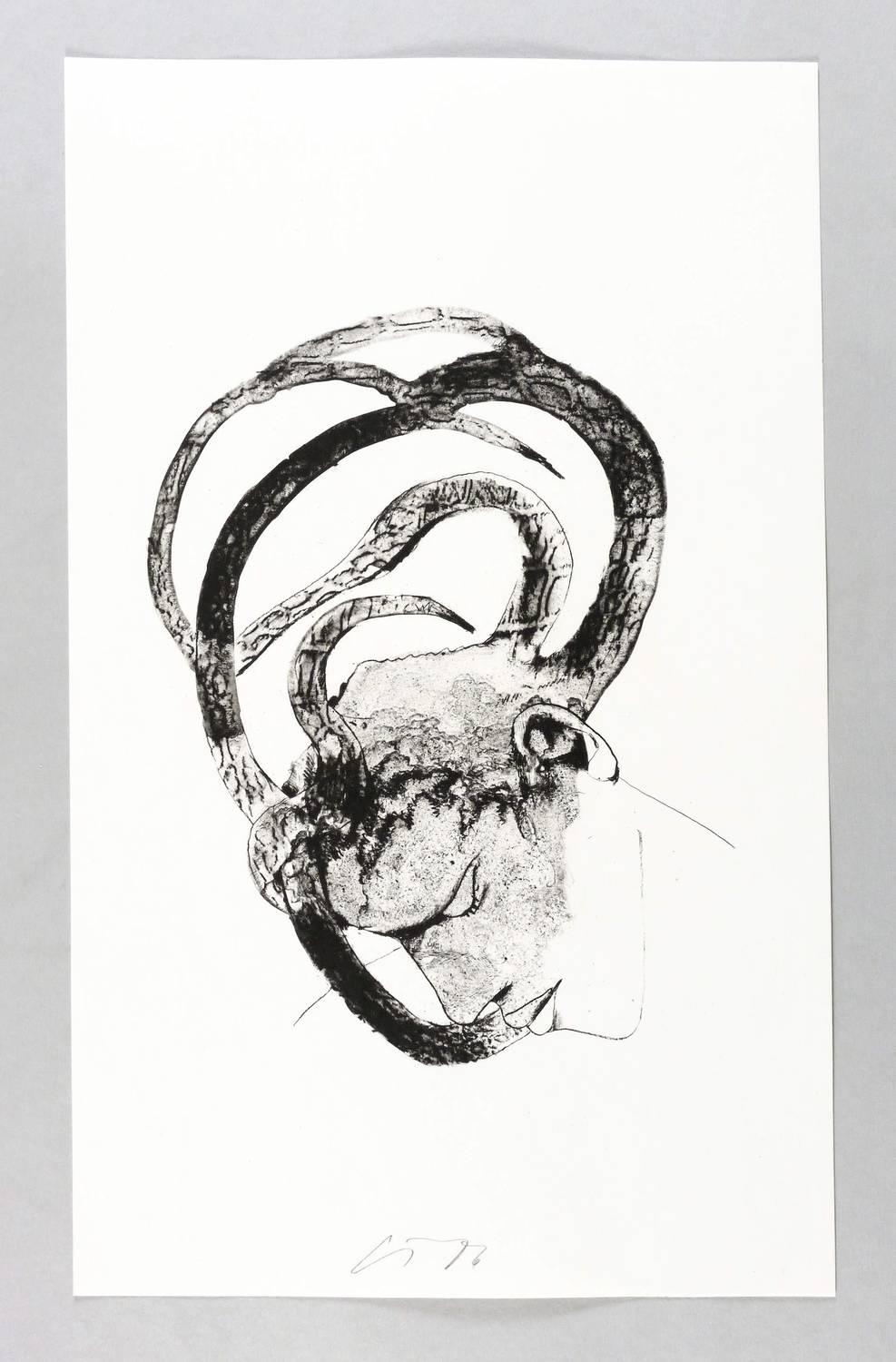 2006. Algrafie / Pinsel- & Federalgrafie, in Schwarz, auf glattem weißem Velin. – Originale Künstlergrafik, von Gudrun Trendafilov. – 23,0 x 17,8 cm (Darstellung / Druckbild), 38 x 23 cm (Blatt).