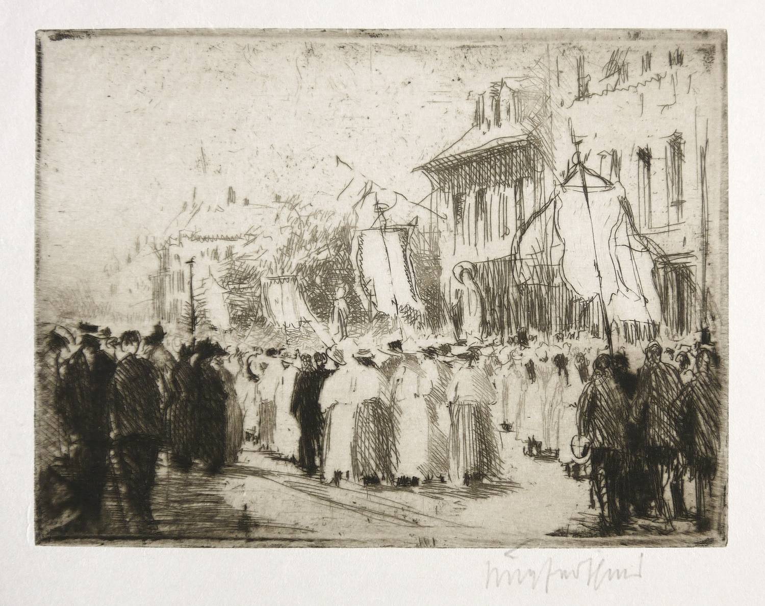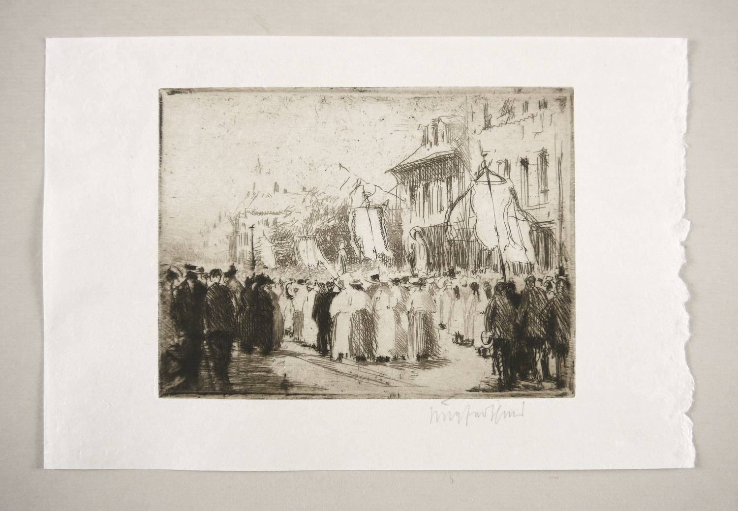Rechts unten in Bleistift signiert: ″Kupferschmid″. – Signierter Einblattdruck. Wohl vor der Auflage für das Magazin ″Die Graphischen Künste″ von 1919. – Originalrandiges Exemplar. Sehr guter Zustand.