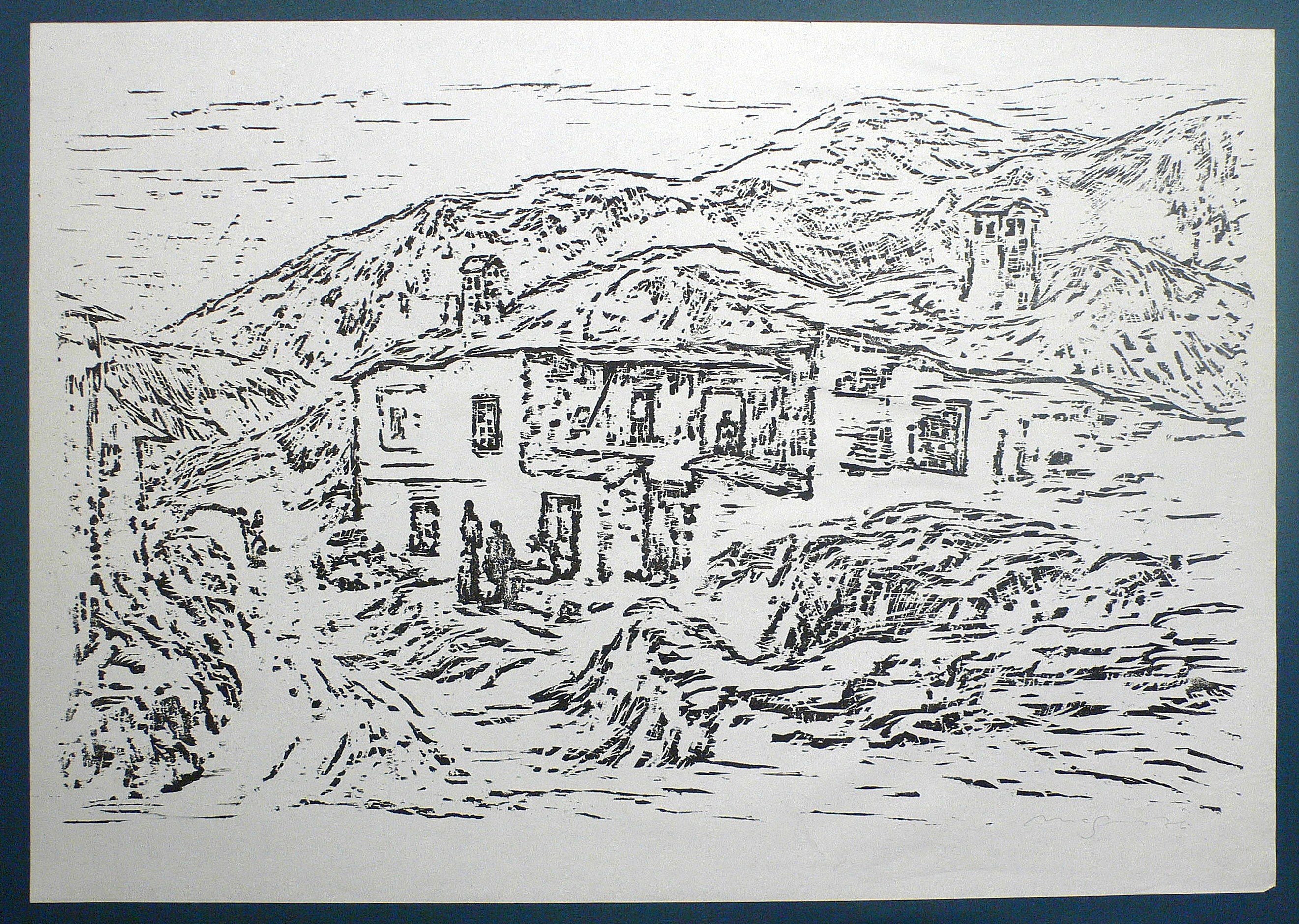 1976. Holzschnitt, in Schwarz, auf hellem Velin. – Originale Künstlergrafik, von Klaus Magnus. – 36,5 x 59,0 cm (Darstellung / Druckbild), 43 x 61 cm (Blatt).