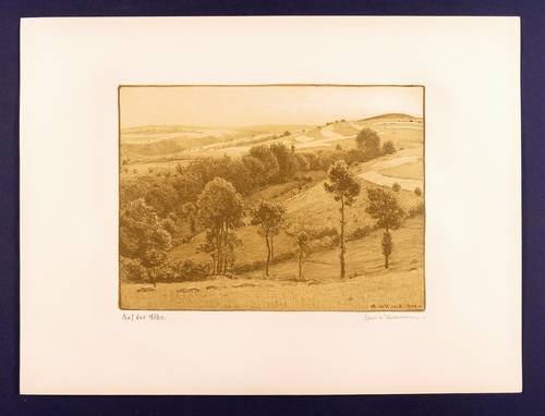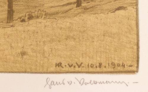 Rechts unten in Bleistift signiert. Im Stein darüber Monogramm und Datum: ″HR. v. V. 10.8.1904 -″. Links unten gedruckter Titel. Verso Stempel der Kunstdruckerei Künstlerbund Karlsruhe mit handschriftlicher Katalognummer ″73″. – Sehr gut erhalten.