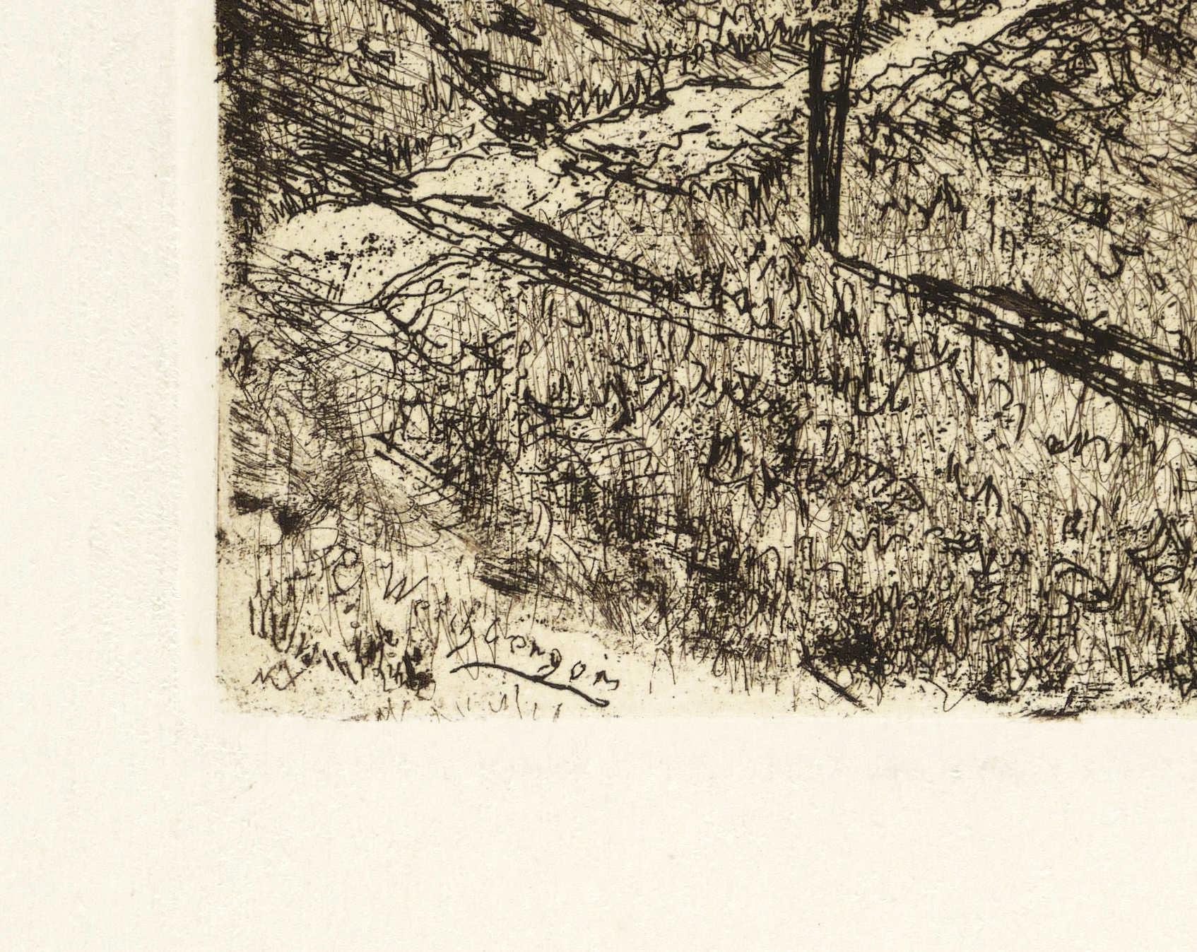 1890-1900. Radierung / Strichätzung & Kaltnadel, mit Plattenton, in Schwarzbraun, auf Kupferdruckpapier. – Originale Künstlergrafik, von Eduard Weichberger. – 19,2 x 23,0 cm (Darstellung), 19,9 x 23,7 cm (Platte), 34 x 47 cm (Blatt).