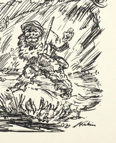 Raabe 126 a (von b). Söhn HDO 108-6. – Aus: Kurt Pfister, Deutsche Graphiker der Gegenwart (Leipzig: Klinkhardt & Biermann 1920). – Nicht handsigniert. Im Stein rechts unten signiert: ″AKubin″. Verso typografisch bezeichnet: ″KUBIN: Auf der Flucht. Originallithographie″. Dazu in Bleistift nummeriert. – Erschienen in einer Auflage von 100 Exemplaren als originalgrafische Beilage zu ″Deutsche Graphiker der Gegenwart″ von Kurt Pfister (Blatt Nr. 8, 1920). – Die Ecken rechts etwas bestoßen. Sonst sehr gut erhaltenes Exemplar.