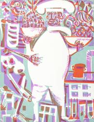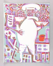 1966. Farbholzschnitt, in Reseda, Hellviolett & Venezianisch Rot, auf hellchamois Werkdruck. – Originale Künstlergrafik, von HAP Grieshaber. – Auflage 3333 Exemplare. – 45,0 x 35,2 cm (Darstellung / Blatt).