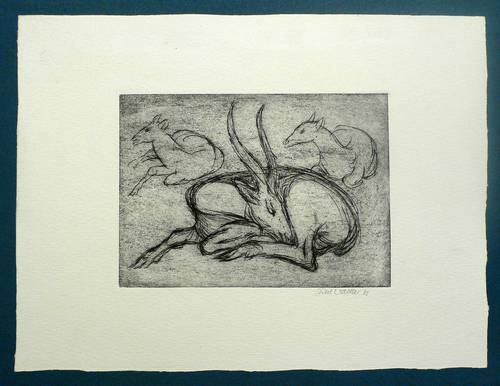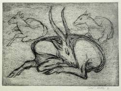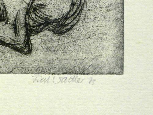 1973. Radierung / Strichätzung, in Schwarz, auf hellem Weißenborn. – Originale Künstlergrafik, von Fred Walther. – 10,2 x 14,3 cm (Darstellung / Platte), 19 x 25 cm (Blatt).