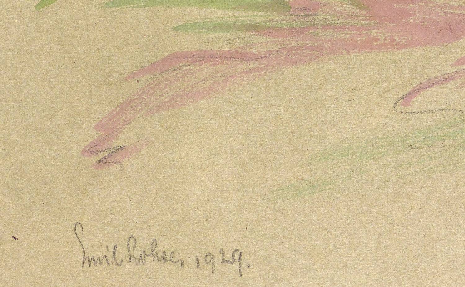 1929. Zeichnung / Gouache, auf grauem Zeichenkarton. – Originale Künstlergrafik, von Emil Lohse. – Unikat. – 23,3 x 34,5 cm (Blatt).