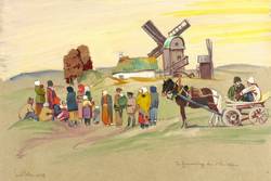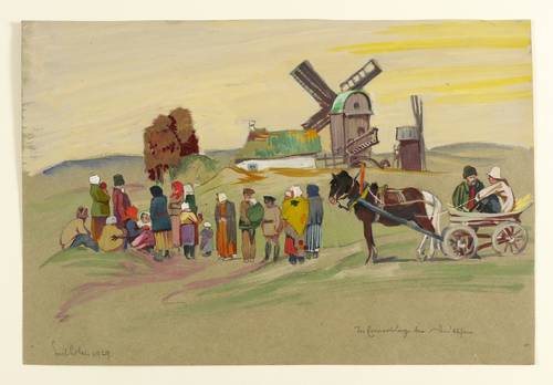 Lohse, Emil. – Polnische Bauern mit Pferdewagen vor Mühle. – „In Erwartung der Deutschen”.