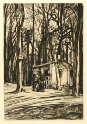 1928. Radierung / Kaltnadel, in Schwarz, auf hellem Kupferdruckpapier. – Originale Künstlergrafik, von Richard Otto Voigt. – 24,6 x 16,8 cm (Darstellung / Platte), 37 x 28 cm (Blatt).